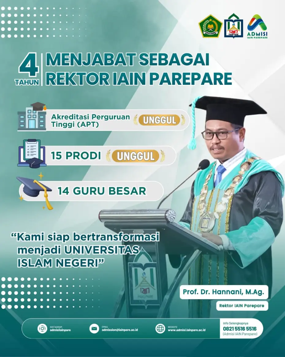 Narasi Unggul IAIN Parepare juga tidak bisa dilepaskan dari nilai yang diusung. "Religius, Moderat, Inovatif, dan Unggul" bukan sekadar jargon kelembagaan, melainkan diterjemahkan ke dalam kebijakan akademik, pengelolaan mutu, serta keberpihakan pada harmoni sosial dan budaya lokal.